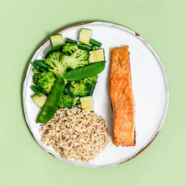Chicken tenderloin with butter sauce. Sides: Green beans, hearty thai rice blend and brownie bites